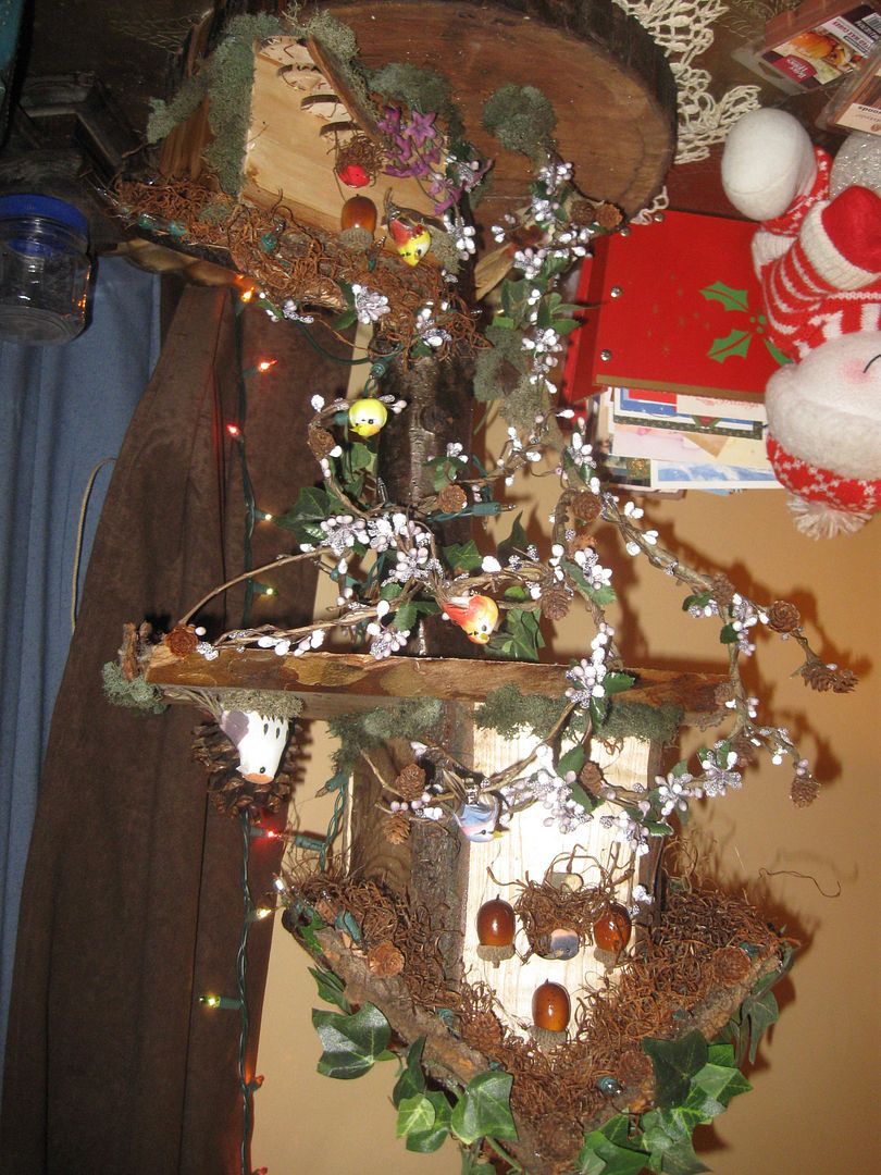 This is the gift Jessalyn's boyfriends mother made our family for Christmas. She made birdhouses for all her gifts to give this year. The picture doesn't do justice to it at all. There is so much detail that the camera just doesn't pick it up. Just beautiful!